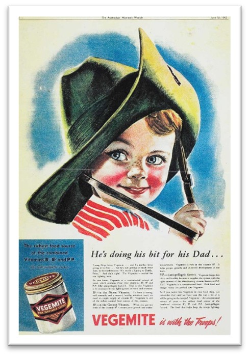 When Vegemite launched in 1923, it quickly became a uniquely Australian flavour and a powerful marker of national identity. At a time when Australia was seeking to distinguish itself culturally from Britain, Vegemite offered something unmistakably local, distinctive and unapologetically different. During the Second World War, rationing meant many Australians could not purchase Vegemite freely, yet its allocation to the armed forces reinforced the idea that it was essential to the nation’s wellbeing. Supplying Vegemite to troops became a symbol of patriotism,[7] strengthening its association with Australian resilience and unity. Its trade mark soon became tied to childhood, family breakfasts and the shared nostalgia that binds generations.[8]